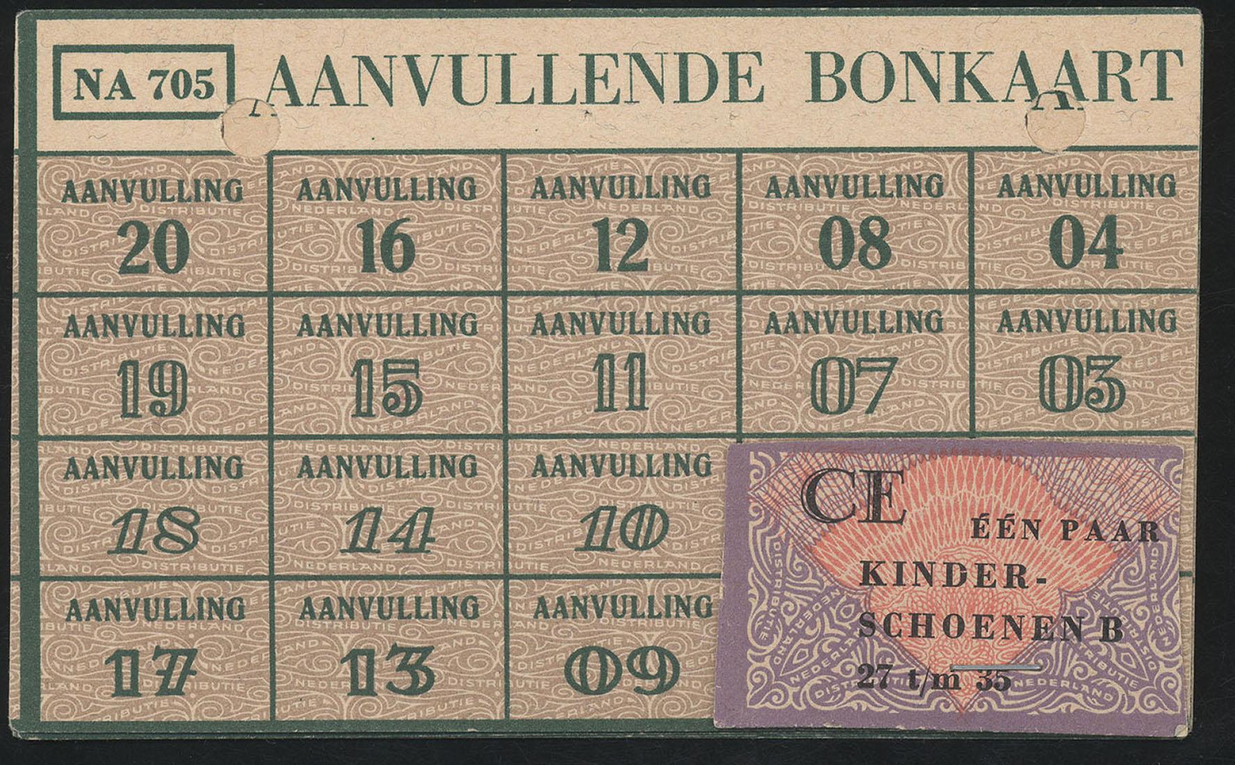 Bonkaart voor kinderschoenen gebruikt voor Rudie Cortissos (1939) tijdens zijn onderduik, ca. 1943