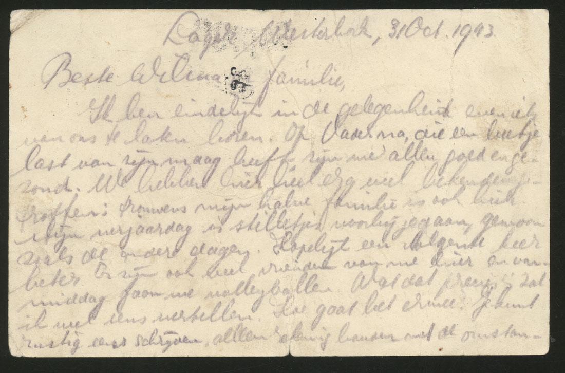 Briefkaart van Salomon Max (Max) Lissauer uit Westerbork aan de familie Geusebroek in de Legmeerstraat in Amsterdam, 1943