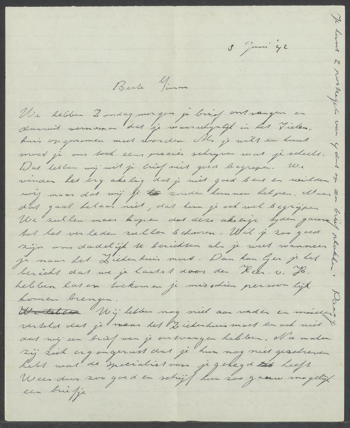 Brieven (5) van Gerrit Tuinder en Reina Tuinder-Blok aan Simon Blok in het werkkamp in Ruinen, 1942