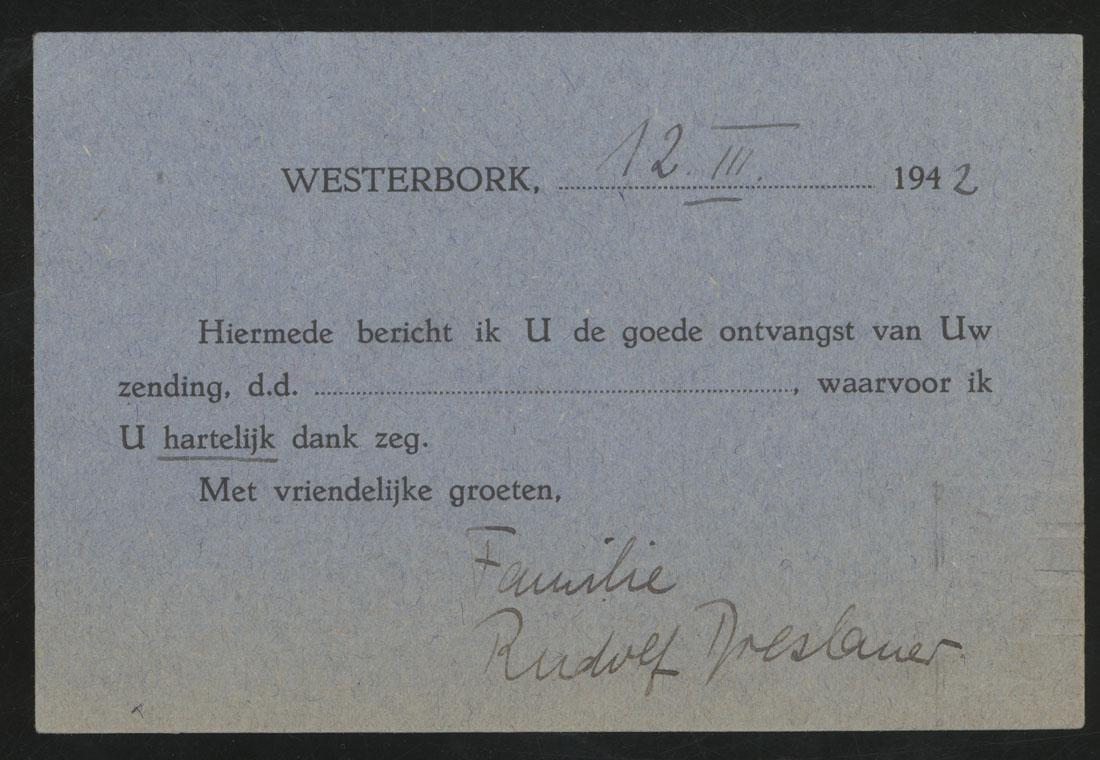 Briefkaarten (2) van Rudolf Breslauer aan de familie Heppener in Utrecht, 1942-1943