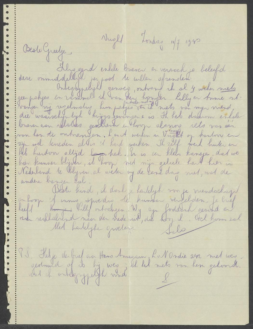 Brieven (2) van Salomon (Salo) Jäger vanuit Vught aan Greet Schuring, 1943
