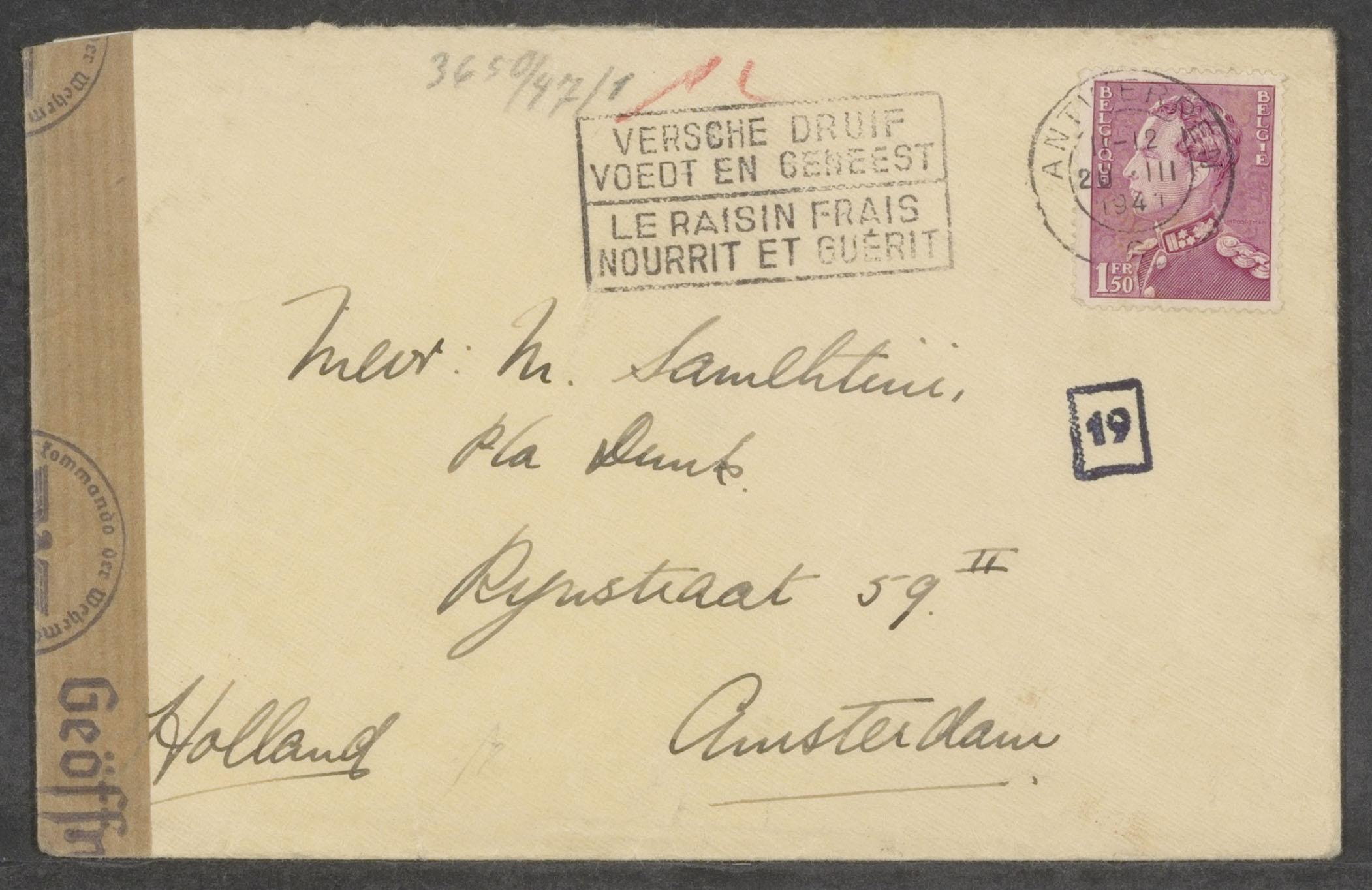 Brieven en kaarten (14) van Harry Samehtini uit Antwerpen en uit het Franse werkkamp Camp les Mazures Ardennes aan zijn moeder Mijntje Roodenburg, 1941-1942