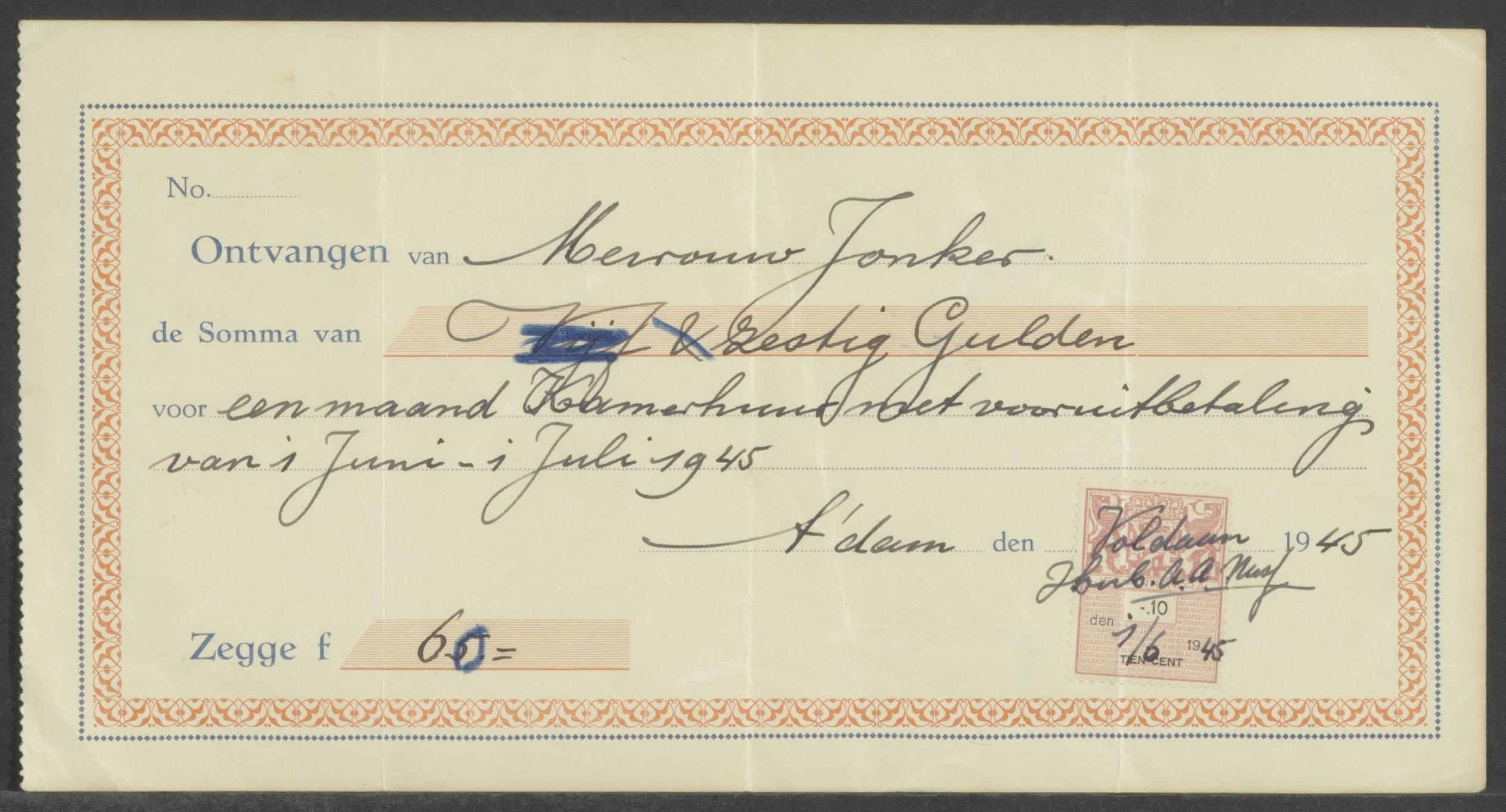 Ontvangstbewijzen (3) van Hetty Aleida Levy-van den Bergh op haar onderduiknaam "Mevrouw Jonker", 1944