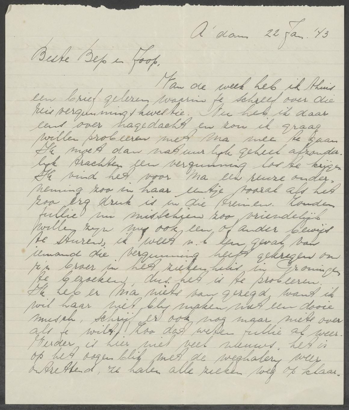 Clara Neeter-Bonn woonde met haar man Henri (Hans) in de Johann Keplerstraat 54 in Amsterdam-Watergraafsmeer. Haar zus Bep, aan wie ze deze brief richt, woonde met haar man Joop van de Weetering in de Jufrouw Idastraat in Den Haag.