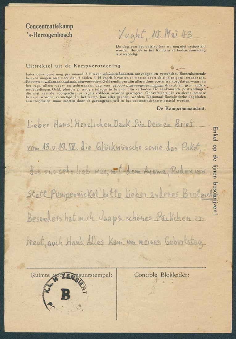 Brieven (3) van Klaus Ulrich (Uli) Beck (1920-1943) vanuit Kamp Vught aan de heer Pieter Hendik Vree in Utrecht, 1943