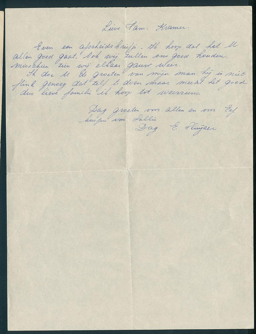 Afscheidsbrief van E. Sluijzer geschreven vlak voor zijn deportatie naar Polen, ca. 1943