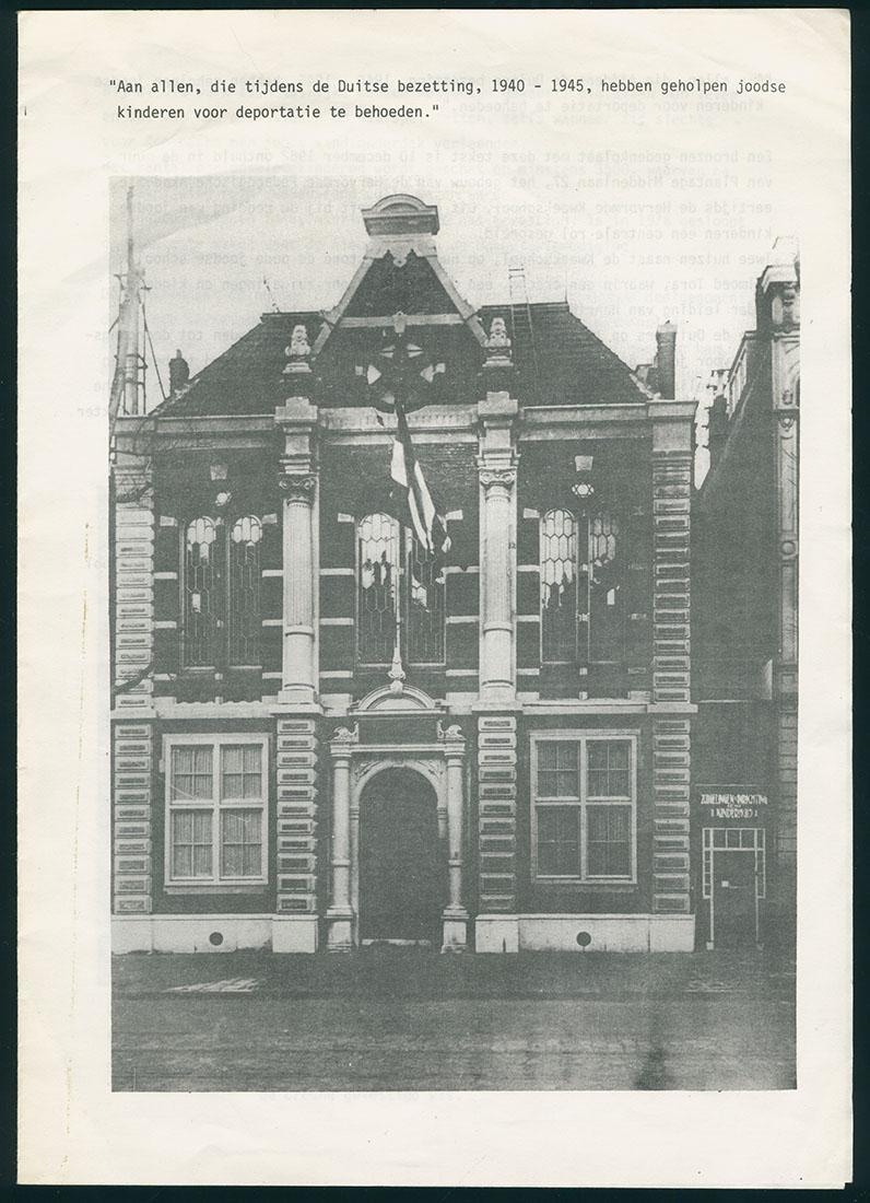 Brochure naar aanleiding van de onthulling van een plaquette ter herinnering aan de hulp aan joodse kindern in de creche aan de Plantage Middenlaan, 1982