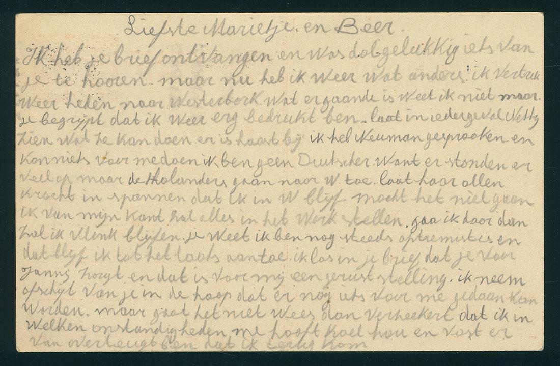 Briefkaart van Emanuel Hammel uit kamp Vught vlak voor zijn vertrek naar Westerbork aan B. Kemper in Blaricum, 1943