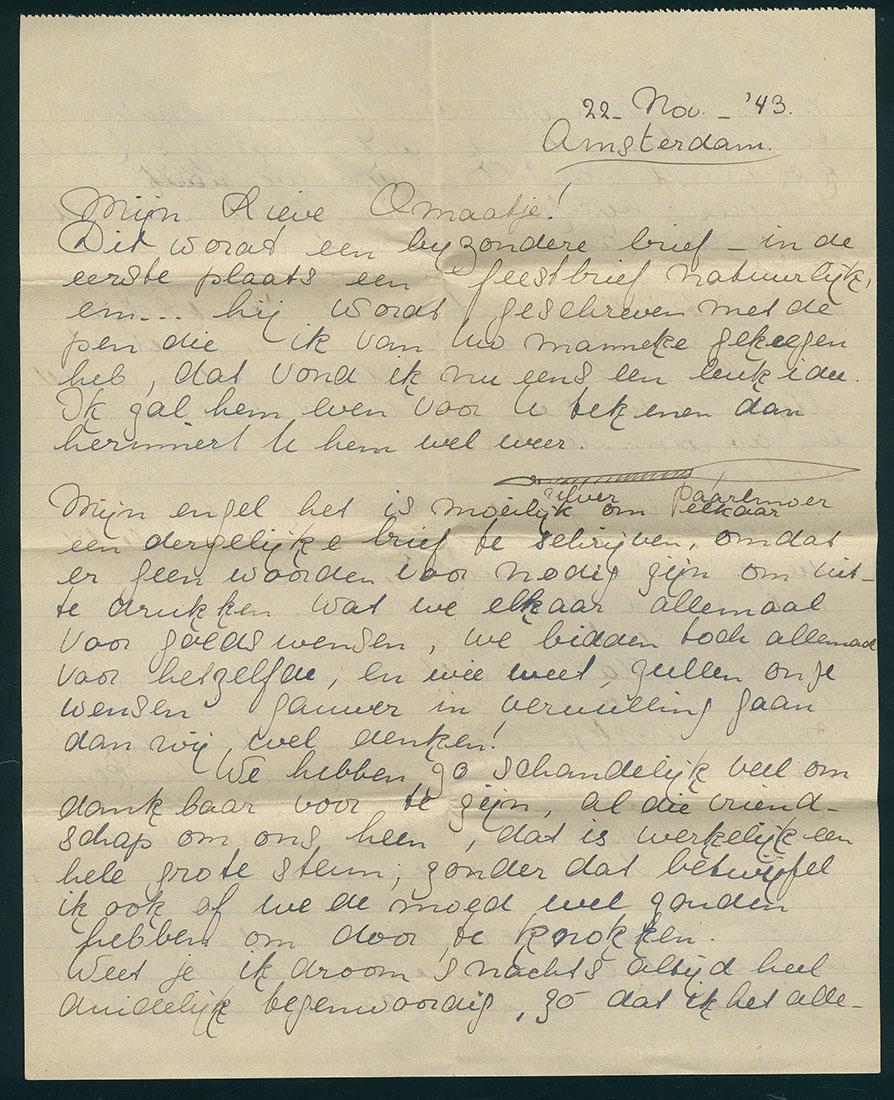 Brieven (6) tijdens de onderduik geschreven door verschillende leden van de familie Van Oven, sommige in het Engels, ca. 1943-1944