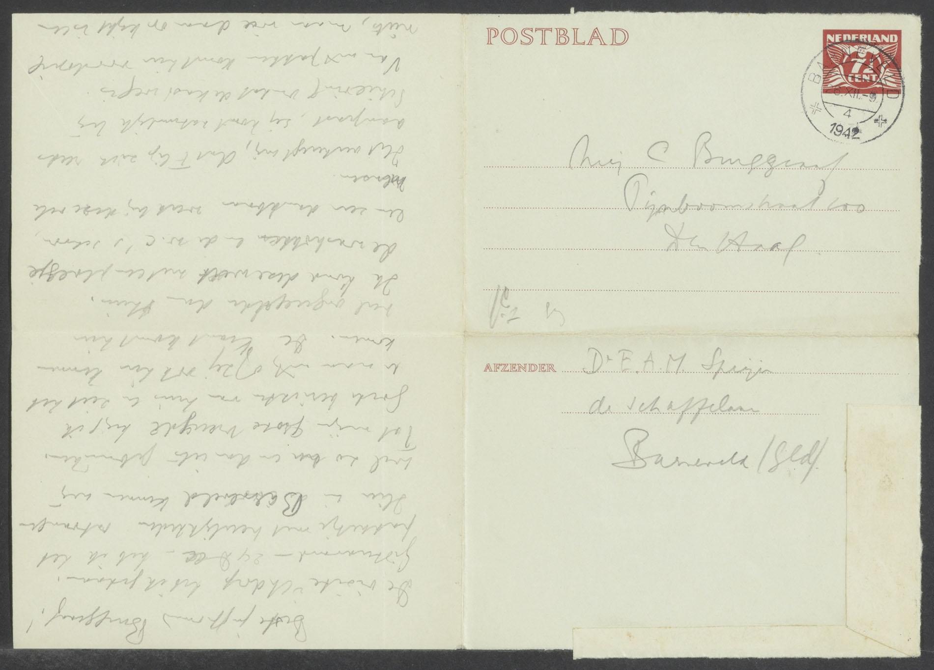 Postbladen (36) van dr. E. Speijer in het Joods Tehuis Barneveld aan zijn ouders en hun buren C. Burggraaf te Den Haag, 1942-1943, uit zijn verzameling poststukken