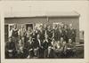 Groepsfoto voor de barak in werkkamp 'de Landweer' in Elsloo, 1942