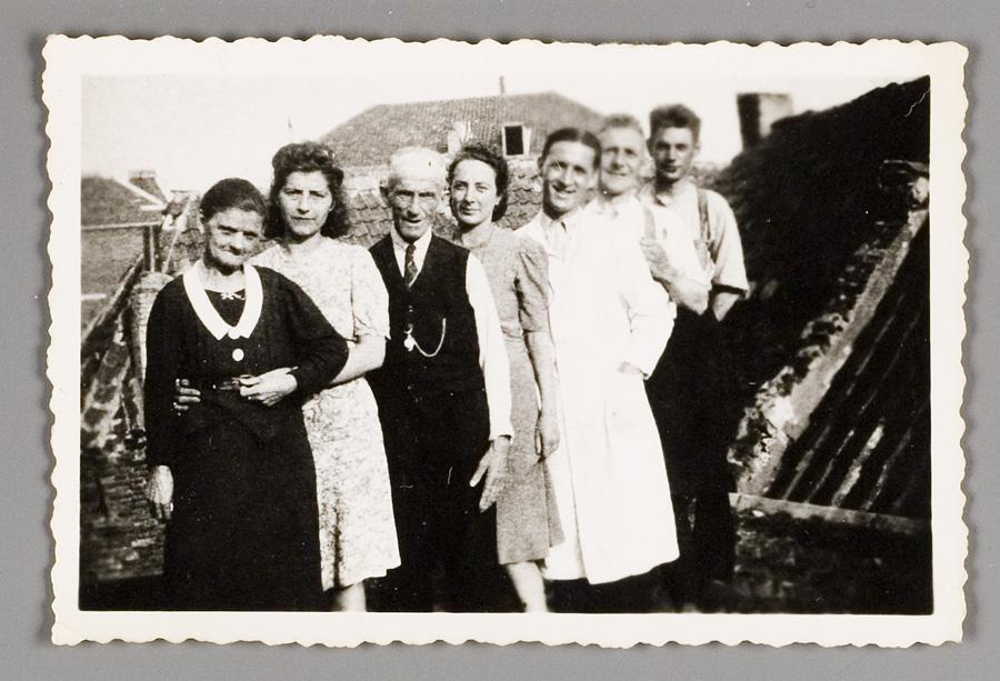 Lex Daniels tijdens zijn onderduik op het dak van het huis van de familie Mikkenie aan de Grootestraat 66-68 in Arnhem, circa 1943