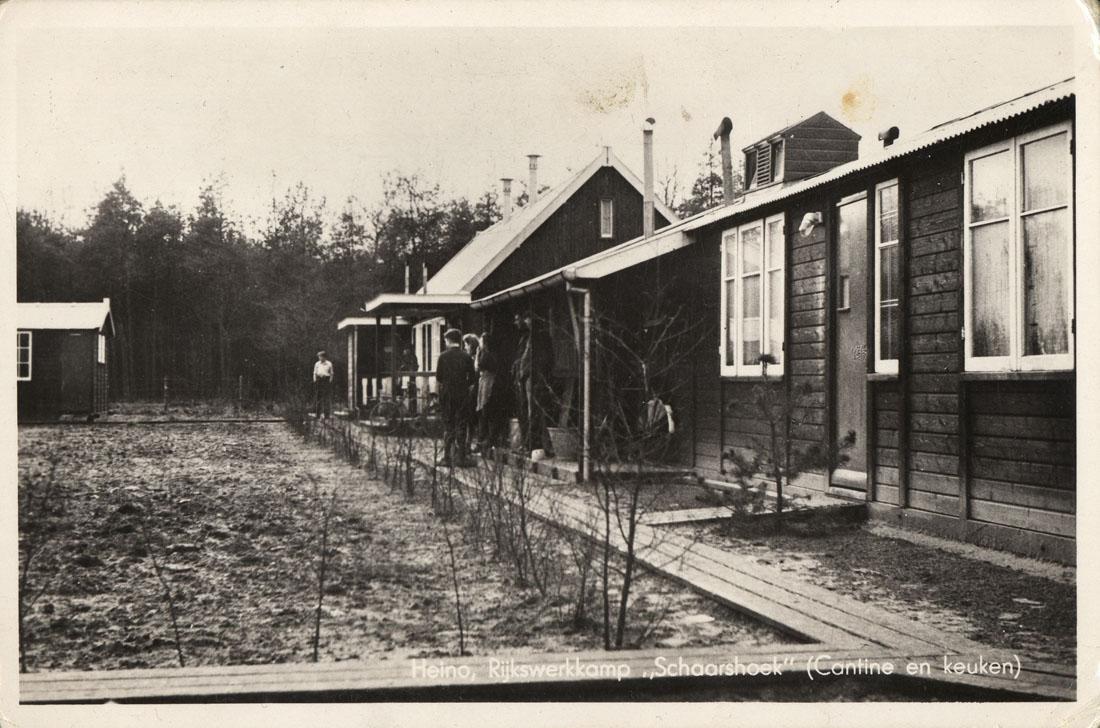Foto van de kantine en de keuken van Rijkswerkkamp Schaarshoek te Heino, circa 1941
