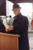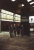 Foto's (2) van Chaim (Herman) Natkiel en andere mensen staand in een loods naast het monument voor het joodse verzet, ca. 1989
