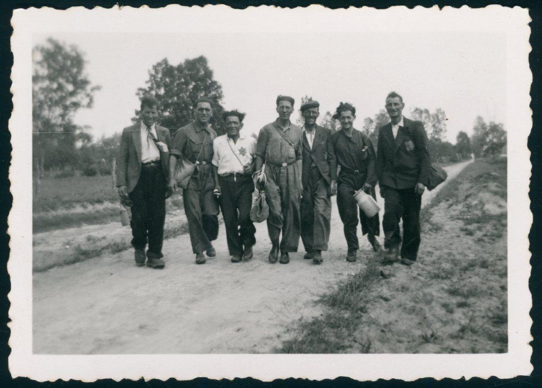 Machiel Zilverberg (tweede van rechts) met zes kampgenoten in werkkamp Conrad, juli 1942