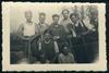 Machiel Zilverberg (3e van rechts) en zeven kampgenoten met kruiwagens in werkkamp Conrad, juli 1942