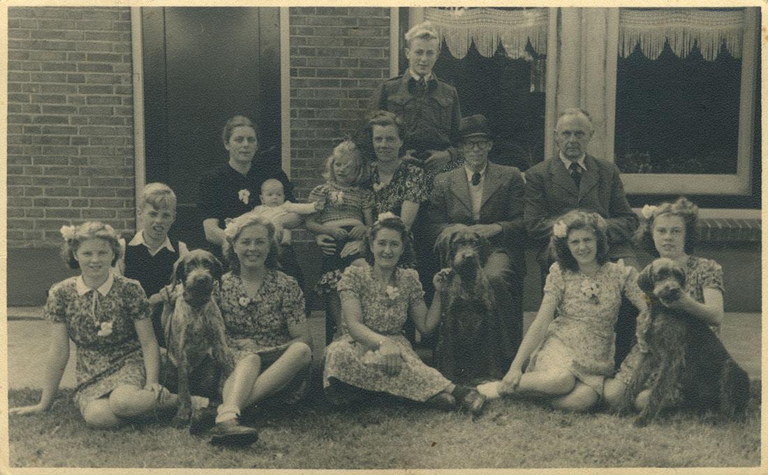 Groepsfoto (3) van onderduikers, waaronder Clara Prins, en onderduikgevers rond de bevrijding in Nijverdal en omstreken, april/mei 1945