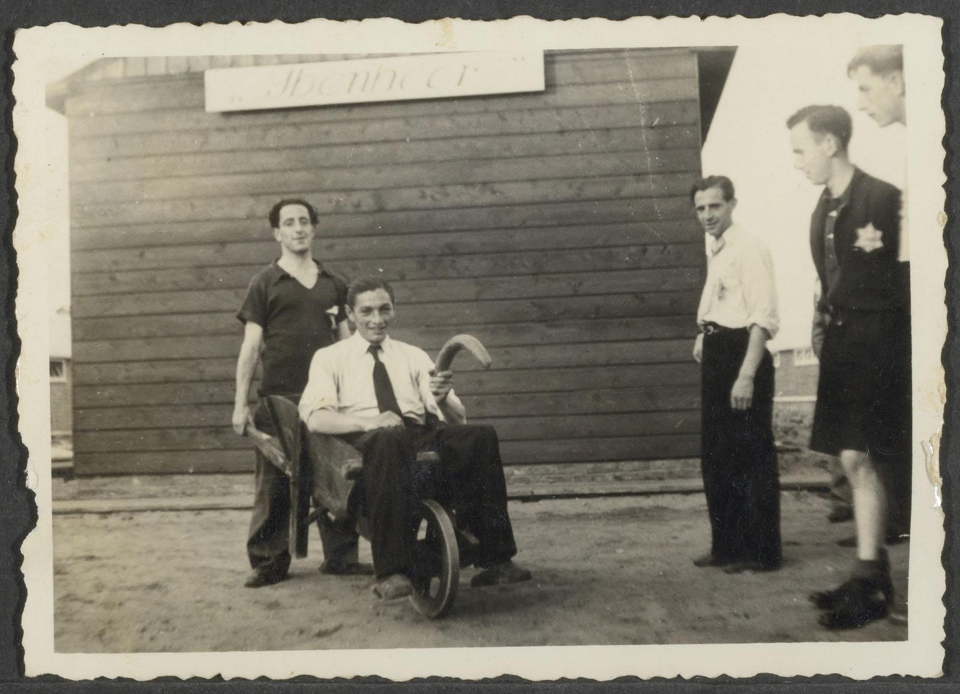 Vijf mannen in werkkamp Ybenheer, Fochteloo, ca. 1942