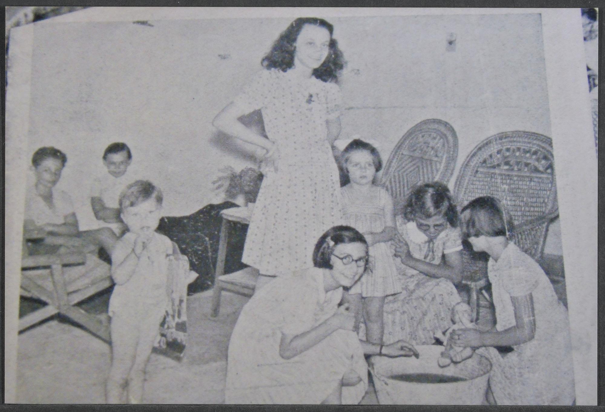 Overzichtsfoto van kamp Onrust op het gelijknamige eiland met tweede van rechts Marcelle Piller, 1941