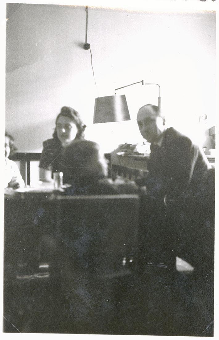 Inhoud : foto a - Norbert Neufeld met Alice in een kamer foto b - idem met meerdere personen foto c - Norbet Neufeld met Alice en Lonnie Lesser (?) in een kamer foto d - Norbert Neufeld leest brieven (of gelukwensen?) foto e - Norbert met een vrouw (Maria ....) gehurkt in het zand foto f - pasfoto van Norbert Neufeld