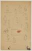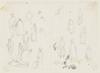 Potloodschetsen van lopende figuren, de meeste van achteren gezien.