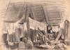 twee vrijwel identieke schetsen onder elkaar van een gang in een zolderverdieping, rechts vaag aangeduide bedden