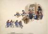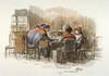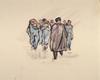 Vijf studies van een strafgevangene, vier keer op de rug gezien, een keer frontaal, die bezig is met het ontmantelen van kabels. Linksonder een mangelwerktuig waarmee het koperdraad werd geplet