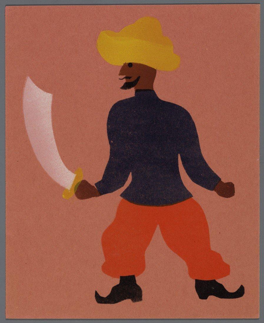 Kaft: man in Turkse dracht, ten voeten uit en profil, met een kromzwaard in zijn rechterhand. Overige pagina's tekst en colophon.