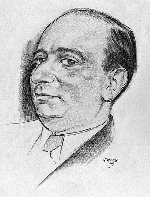 Dhr F.M. Spanier, hoofd en trois quart naar links, met stropdas.