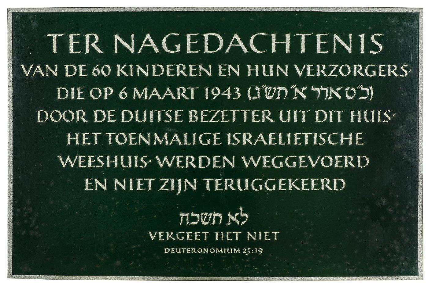 Ter nagedachtenis aan weggevoerde kinderen weeshuis Den Haag