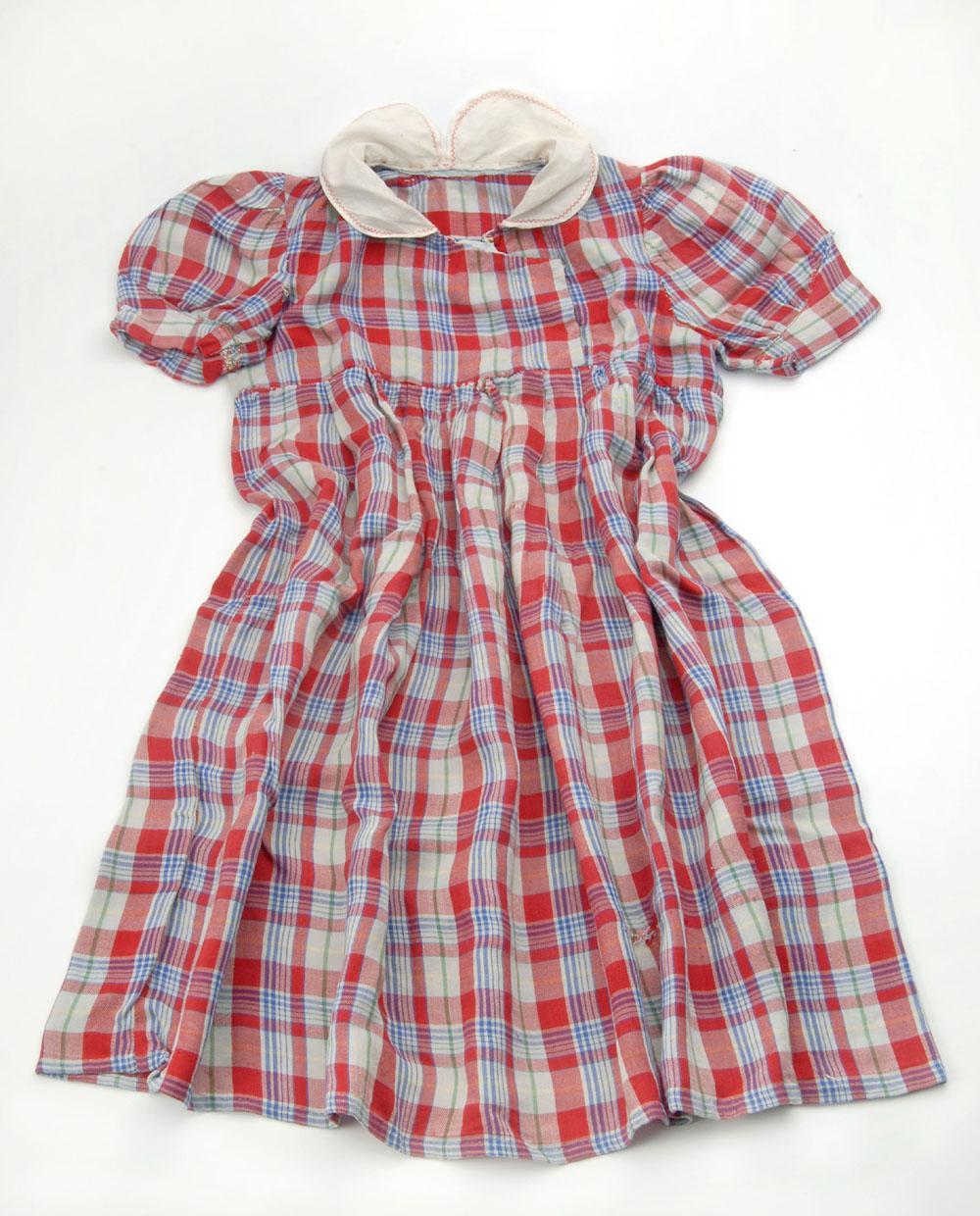 Dit jurkje droeg het joodse meisje Mary van Gelder op haar onderduikadres in het Limburgse Houthem. Op een foto uit 1944, waarop ze samen met haar onderduikmoeder Maria Mulleneers staat, heeft ze het jurkje aan.