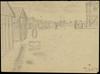 Winters, leeg landschap met in de verte een hek en wachttoren, op de voorgond een kale boom en struikjes, een schuurtje en een kruiwagen