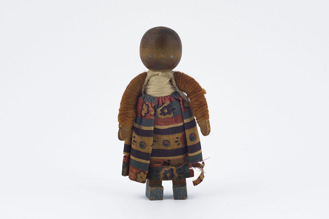 Dit houten popje is vervaardigd door Sophie van Oven-Schaap en/of Rachel Schaap-Rozelaar. Zij maakten dergelijke popjes in de oorlog voor de verkoop. Na de oorlog zijn ze hiermee doorgegaan - voor de Bijenkorf - maar toen waren de poppetjes van stof. Huisvlijtpopjes als deze werden in de Tweede Wereldoorlog vervaardigd voor de verkoop.