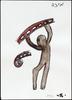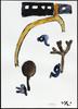 Een in een naïeve gestileerde stijl geschilderde aquarel voorstellende een man die een voorwerp hoog boven zich uit draagt. Een afgebroken (?) deel valt.