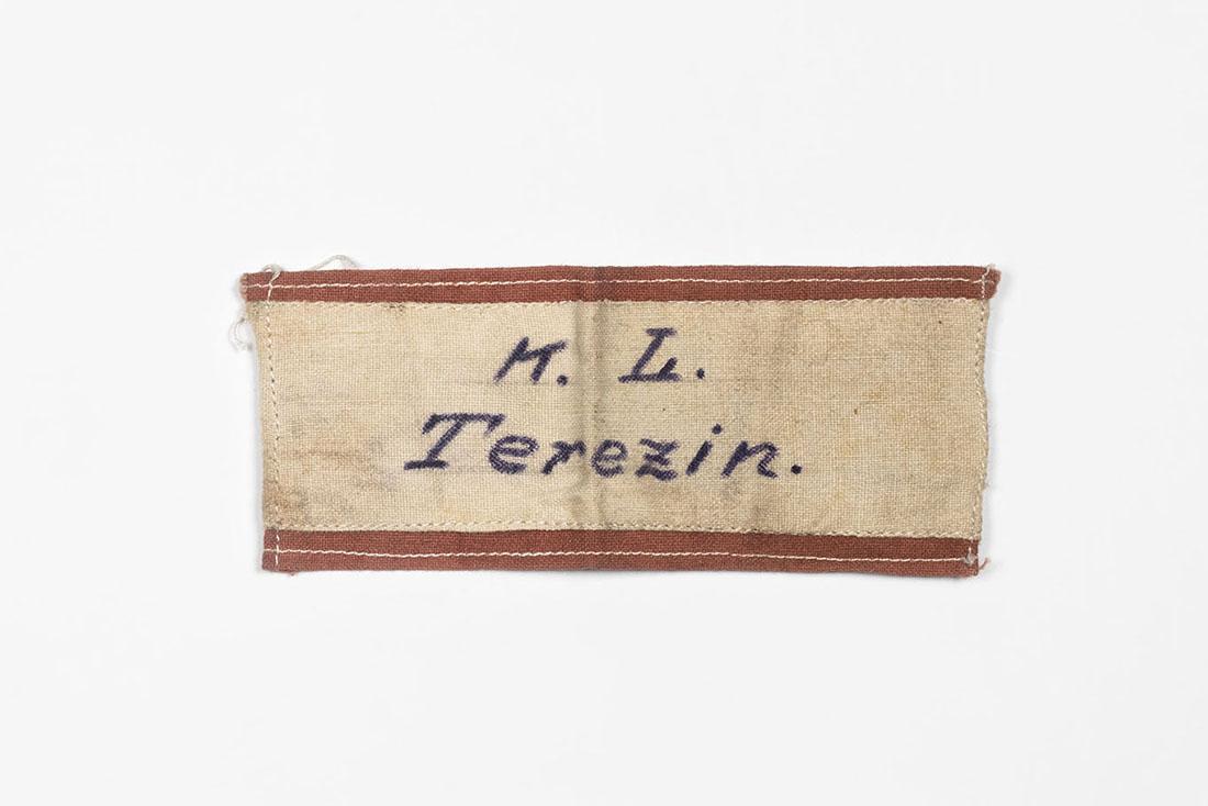Dit label werd (samen met een paar andere objecten) door Hans Ernst Brisch (1887-1971) meegenomen uit Theresienstadt, als aandenken aan zijn zoon Klaus. Klaus Brisch was vermoedelijk bij de Ordnungsdienst van Theresienstadt te werk gesteld, zijn vader was er 'Sanitäter' (verpleger). Ernst Klaus Brisch kwam uiteindelijk om het leven in een van de vele 'buitenkampen' van Dachau.
