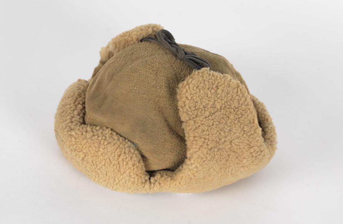 Tentoonstellingstekst Nationaal Holocaustmuseum, maart 2024 Mutsen Simon Cohen droeg deze soldatenmuts tijdens zijn repatriëring uit Auschwitz. Hugo Weil, die ook Auschwitz overleefde, droeg de Russische muts op zijn terugtocht naar Nederland. Toen hij in Maastricht aankwam, ontmoette hij Ruth Loszynski-Reich. Zij was als weduwe uit Bergen-Belsen teruggekeerd. Hugo en Ruth trouwden later.