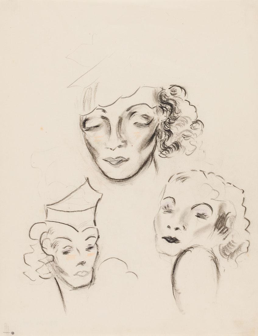 drie vrouwenhoofden van modellen of filmsterren