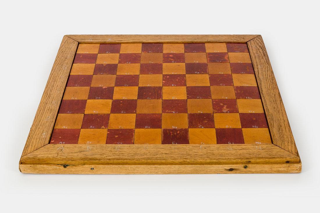 Dit schaakbord is gemaakt door Louis Cortissos (1912-1959) op zijn onderduikadres aan de Parnassusweg 14-I in Amsterdam. Zijn toen vijfjarige zoon Rudie Cortissos (1939) was op dat moment ook ondergedoken op dit adres. Louis zat echter tussen twee plafonds verborgen en Rudie wist lange tijd niet dat zijn vader zich ook op dit adres bevond.