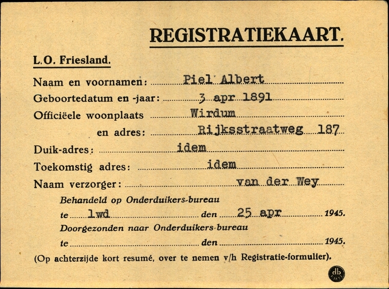 Onderduikinschrijving van Albert Piel