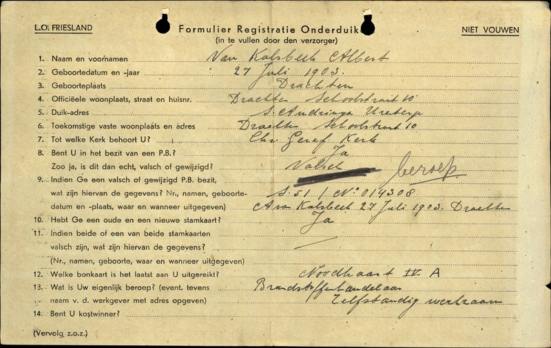 Duikadres: Fabriekslaan 81, - Oorspronkelijk adres: Hendrik Casimirstraat 21, - Reden onderduik: jodenvervolging - Overige opmerkingen: Bijzondere opmerkingen: Fabriekslaan in Drachten? - Laatste bonkaart: Noodkaart IV A - In het begin van de oorlog heeft de fam. steun verleend verder weten we nog niets.