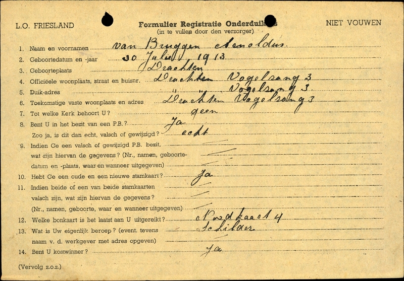 Duikadres: Vogelzang 3, Drachten - Oorspronkelijk adres: Vogelzang 3, Drachten - Reden onderduik: arbeidsinzet