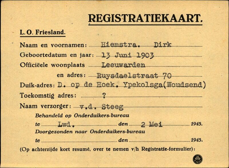 Onderduikinschrijving van Dirk Hiemstra
