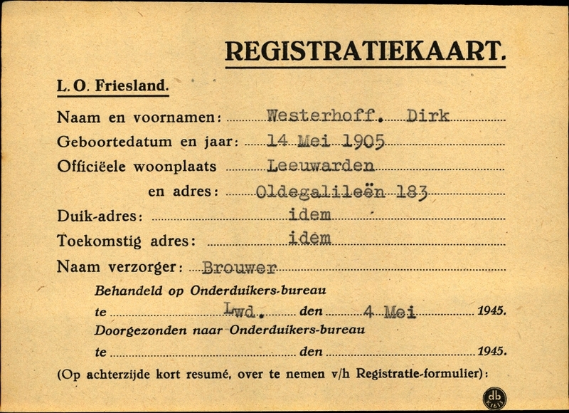 Duikadres: Oldegalileën 183, Leeuwarden - Oorspronkelijk adres: Oldegalileën 183, Leeuwarden - Reden onderduik: arbeidsinzet - Overige opmerkingen: Achterkant beroep: Rijwiellakker-metaalslijper