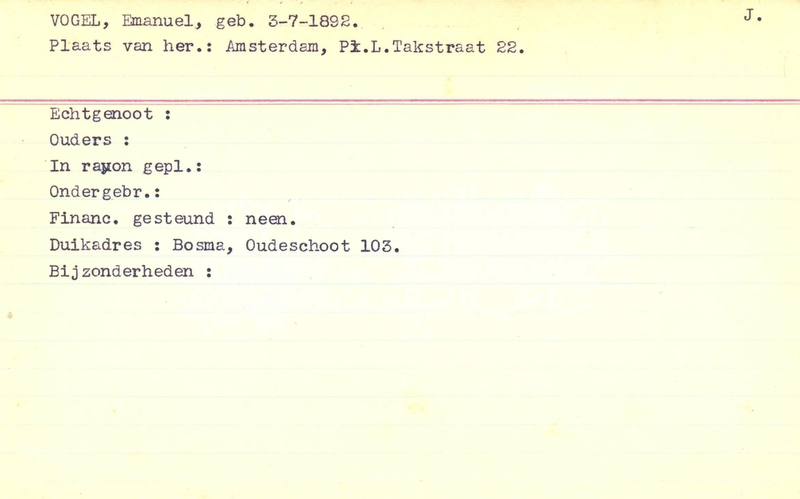 Onderduikinschrijving van Emanuel Vogel