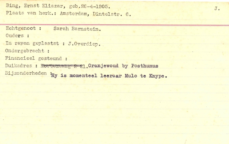 Onderduikinschrijving van Ernst Eliazar Bing