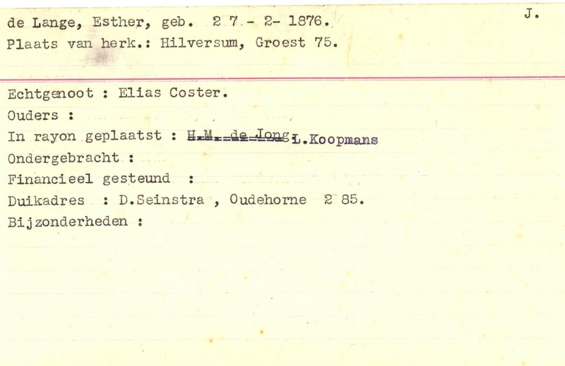 Onderduikinschrijving van Esther de Lange