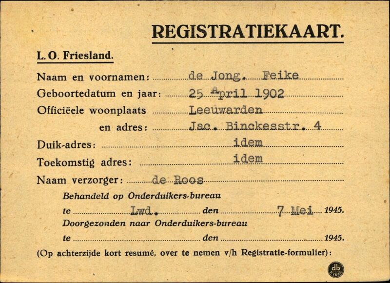 Onderduikinschrijving van Feike de Jong