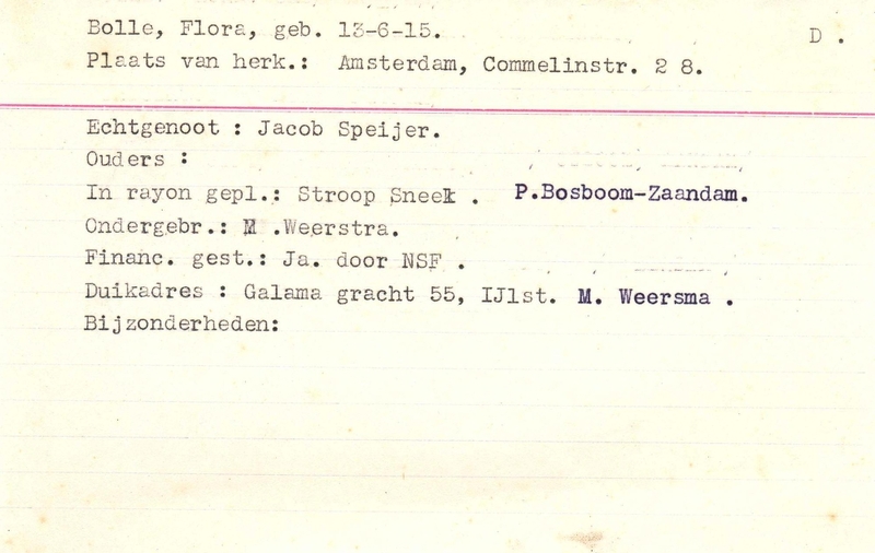 Duikadres: Galamagracht 55, IJlst - Oorspronkelijk adres: Commelinstraat 28, Amsterdam - Overige opmerkingen: Bijzonderheden: In rayon gepl: Stroop Sneek P. Bosboom-Zaandam - Financ. gest.: Ja. door NSF.