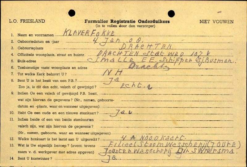 Onderduikinschrijving van Fokke Klaver
