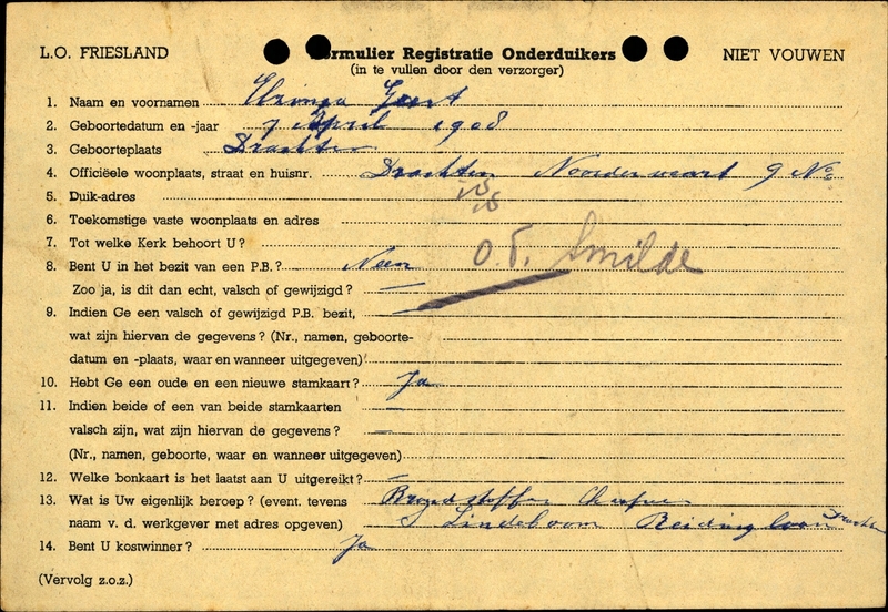 Duikadres: Noordervaart 9, Drachten - Oorspronkelijk adres: Noordervaart 9, Drachten - Reden onderduik: arbeidsinzet